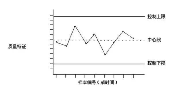 控制图是对生产过程质量的一种记录图形,图上有中心线和上下控制限,并有反映按时间顺序抽取的各样本统计量的数值点。中心线是所控制的统计量的平均值,上下控制限与中心线相距数倍标准差。多数的制造业应用三倍标准差控制限,如果有充分的证据也可以使用其它控制限。
