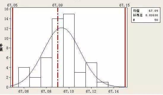 ④ 把上述所取数据作立方图,将立方图和标准界限(公差上限和下限)相比较,看是否在理想状态和较理想状态,如果达不到要求,就必须采取措施,使平均位移动或标准偏差减少,采取措施以后再重复上述步骤重新取数据,做控制界限,直到满足标准为止。