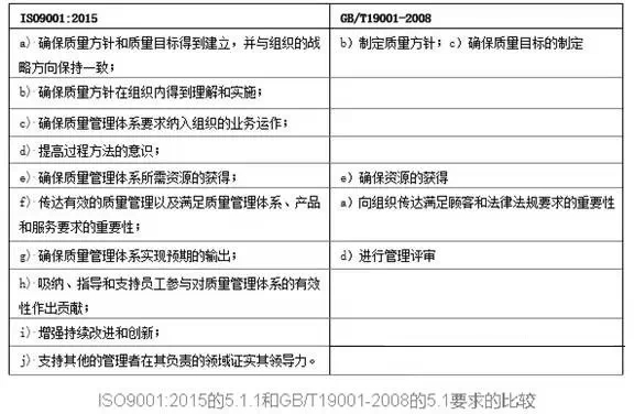 我们可以从两版标准中的对比看出新版标准在哪些方面增强了要求。2008版中,对最高管理者的要求有五项: