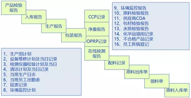 4. 过程检验记录:CCP、重量记录、指标(质量)、异常报告、卫生记录、设备清洗记录、环境监控记录、生产用水(冰)检验记录;