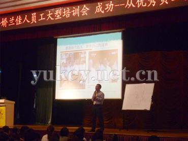 2011年 8月19日,广州誉杰咨询公司资深讲师曾老师受邀为广州娇兰佳人化妆品连锁有限公司800多名化妆品导购员、店长做了一天的《优秀员工成功必备心态》课程。为了使培训突出效果和更有针对性,曾老师带领助理与娇兰佳人培训负责人进行了充分的沟通与交流,了解客户的需求和期望,还亲自到娇兰佳人广州的店面实地考察和调研,花了大量时间通过网络更加详细的了解娇兰佳人的企业文化,理念,公司发展目标和规划以及公司最近的新闻动态等!并把了解到的信息及时添加到课程PPT中,充分融入到授课内容中去,让学员深受感动。培训结束是,娇兰佳人培训负责人对曾老师给予了高度认可和赞赏,感动之余期待后续的再次合作!