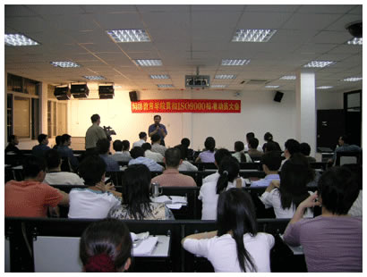 2005年4月25日晚上八点,在华师大网院203课室召开了“网络教育学院贯彻ISO9000标准动员大会”。网院全体领导及学院教学管理人员、誉杰咨询公司三位咨询师出席了大会。 大会由学院副院长聂瑞华教授主持,网络教育学院院长、博士生导师丁新教授做了动员报告。他分析了贯彻、建立质量管理体系的目的和意义,并指出,贯彻ISO9000标准作为网院“2005质量年”的重大举措之一,是我院教学工作完成一个循环之后进行自我梳理,自我提高的需要,是迎接全国普通高等学校网络教育学院教学工作评估的需要,更是实现我院发展目标、提高整体竞争力的迫切需要。他要求学院全体员工持积极的心态,将贯标作为自己的份内职责,予以有效的落实。 为了保证贯标工作的顺利实施,经学院领导讨论决定,网院成立了以丁新院长、乔东林书记为组长的贯标领导小组,以聂瑞华为组长,武丽志为副组长的贯标工作小组,具体负责实施事宜。 动员结束后,誉杰公司高级培训师作了题为《如何建立有效的ISO 9000体系》的专题培训。学院员工认真听课,并就关心的问题与培训老师进行了热烈的讨论。 贯标动员大会的召开,标志着我院ISO9000质量管理体系建设与认证工作的正式全面启动。