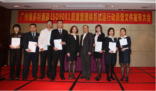 管理者代表陈朝晖副总经理讲话提出:广州维多利酒店有限公司实施ISO9001标准工作的计划、质量体系文件的架构、培训计划及对各岗位的要求。