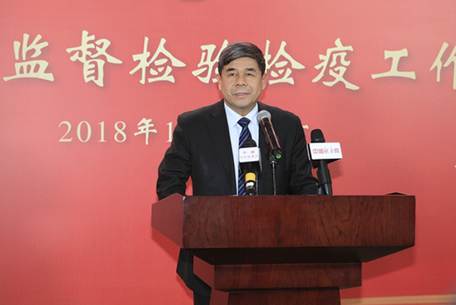 1月9日,2018年全国质量监督检验检疫工作会议在北京召开。为了创新宣传形式,回应民众关切,本次会议新设“司局长通道”。图为国家认监委副主任刘卫军接受记者采访。