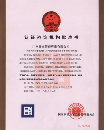 2010年8月,我公司顺利通过了国家认证认可监督委员会和广东省质量技术监督局的认证咨询资质备案扩项复评审,我司喜获国家认监委批准的十三项体系认证咨询备案资质,分别是:质量、环境、职业健康安全、ISO22000/HACCP、ISO/TS16949、实验室管理体系、能源管理体系、ISO13485、AS9100、ISO20000、ISO/IEC27001、有机产品的认证咨询(新批准号:CNCA-Z-20Q-2008-002),是当前全国批准资质最多的认证咨询机构。 誉杰公司凭借雄厚的实力和良好声誉,2003年即获得了国家认证认可监督管理委员会的三体系认证咨询批准,是当时国家的最高批准资质。2006年扩项获得广东省内咨询机构唯一的六项批准资质,并至今一直保持着认证咨询业内的最高批准资质。2008年再次扩项为十项批准资质,至今最新获得十三项批准资质。誉杰公司是中国认证认可协会的常务理事单位,是广东省认证认可协会的发起单位和常务理事单位,也是广东省企业培训协会的常务理事单位。 誉杰公司全体同仁感谢政府主管部门、业内同行和客户企业对我们的支持与厚爱,给予的荣誉一直都是我们前进的动力和鞭策。我们将继续开拓进取,跟进管理理念最新前沿,创新管理理论、方法,用心协助我们的客户企业建立适用、实效的管理体系,让我们的客户企业不断由成功走向卓越。 |