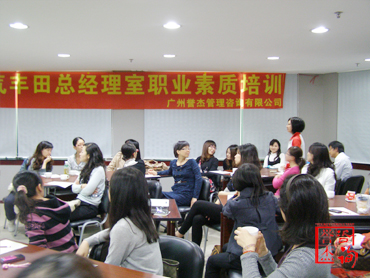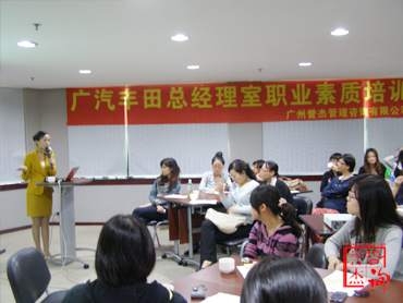 2010年11月7日,我司资深礼仪讲师何老师为广汽丰田的30多名员工进行了一场精彩的《秘书着装礼仪》的培训。学员们被何老师专业的讲解所吸引,课堂气氛活跃;即使在课间,大家的热情依然不减,纷纷向老师请教。最后在学员的高度赞赏下,此次培训完美结束!