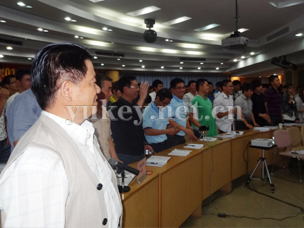 2011年11月20日,广州誉杰资深讲师游老师受邀为利洋水产科技有限公司进行《员工心态激励》培训,参加培训的人员近300人,多为各地的销售人员。课程分四个章节,第一章为构筑梦想,树立目标。积极心态是实现梦想的开始,坚持是一种优秀的品质。第二章是积极心态。积极心态就是阳光、健康、正向的人生保证。第三章讲成功销售员的七宗武功秘笈。第四章是永不放弃,学会在工作中寻找乐趣。可以成功,可以失败,但不可以放弃。游老师精彩的讲授博得了大家一阵阵雷鸣般的掌声,课程结束后马总经理亲切的与游老师握手致谢!