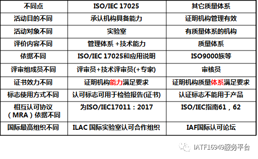 有比较,才有鉴别。小编特意制作了如下的对比表来加深大家对“实验室认可”这个概念的理解: