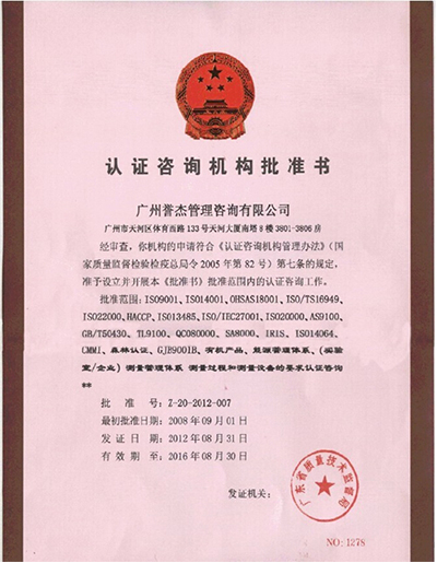 誉杰公司经国家认证认可监督管理委员会批准,在工商营业执照中已注册“认证咨询”经营范围,可合法开展认证咨询业务,具有明确的法律地位。