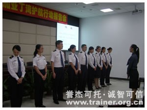 2009年10月19日下午,广东省海事局人力资源部为满足新组建的礼仪队员的服务技能需求,邀请誉杰公司为其全体队员举办了一期礼仪培训。礼仪队的成员主要从业务队伍中选拔,要求具有较好的敬业精神,热爱本职工作,普通话标准,仪态规范等。经过一系列的礼仪培训后,将代表省海事局在系统内外开展各项活动,展示海事礼仪风采,是海事局的微笑大使。